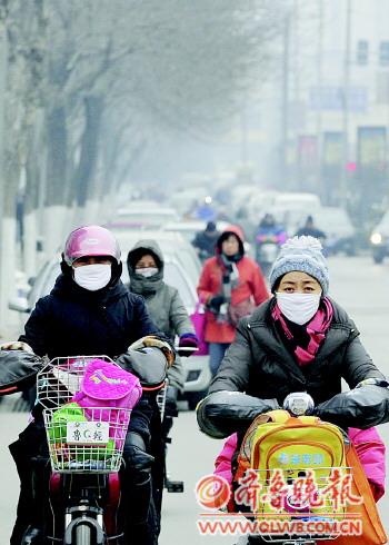 20日,濟南市民佩戴口罩出行。   本報記者 王媛 攝