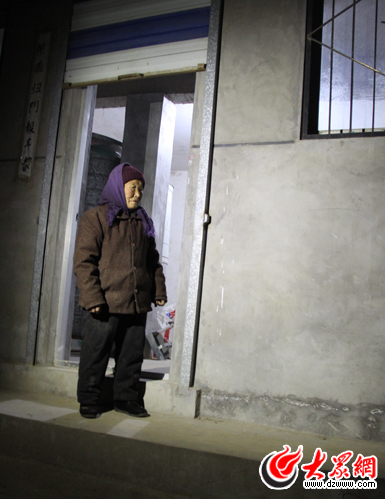 楊洪義出發(fā)后,劉大娘一直站在門口看著老伴消失在夜色中。(韋輝 攝)