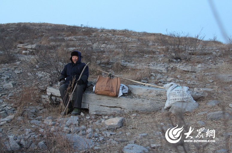 在大嶺山半山腰,老人第一次放下?lián)有菹ⅲü上碌哪菈K大石頭是老人每次經(jīng)過(guò)的歇腳點(diǎn)。