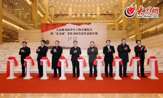 與會領(lǐng)導(dǎo)、嘉賓共同為“丹青頌”齊魯書畫名家作品展開幕剪彩。(盛堃 攝)