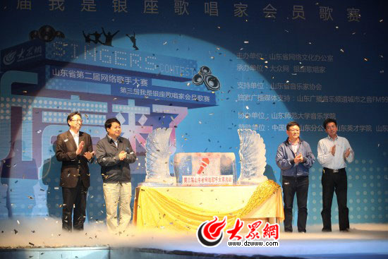 比賽結(jié)束,山東省委宣傳部副部長(zhǎng)、山東省網(wǎng)絡(luò)文化辦公室主任劉致福,大眾報(bào)業(yè)集團(tuán)黨委常委、副總編輯楊曉洲,山東省文聯(lián)副主席、省音樂家協(xié)會(huì)主席張桂林,山東大眾傳媒股份有限公司(大眾網(wǎng))董事長(zhǎng)、總經(jīng)理林忠禮共同為山東省第三屆網(wǎng)絡(luò)歌手大賽揭幕。大眾網(wǎng)對(duì)比賽進(jìn)行了全程衛(wèi)星直播。有興趣的網(wǎng)友可隨時(shí)登陸大眾網(wǎng),繼續(xù)關(guān)注山東省第三屆網(wǎng)絡(luò)歌手大賽的最新動(dòng)態(tài)。