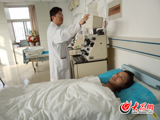 醫(yī)生在為呂明玉做淋巴性干細胞懸液采集