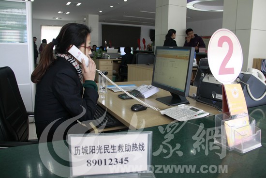 在濟(jì)南市歷城區(qū)陽(yáng)光民生救助服務(wù)中心,工作人員正在接聽(tīng)群眾電話,登記群眾反映的問(wèn)題。記者 張帆 攝