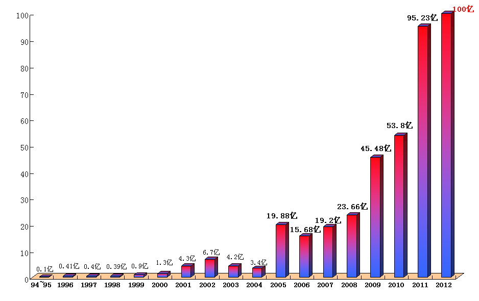 2004年,山東體彩年銷量只有3億元,面臨著極大的市場危機(jī)。2005年,山東體彩實現(xiàn)19.88億元的銷量,一舉扭轉(zhuǎn)不利局面;2008年、2009年,抓住奧運會和全運會的歷史契機(jī),連續(xù)邁上20億元和40億元兩級臺階,進(jìn)入全國體彩“第一集團(tuán)”;2010年、2011年,再次沖破50億元和90億元大關(guān);2012年,經(jīng)過8年奮戰(zhàn)的山東體彩正式進(jìn)入“百億俱樂部”。