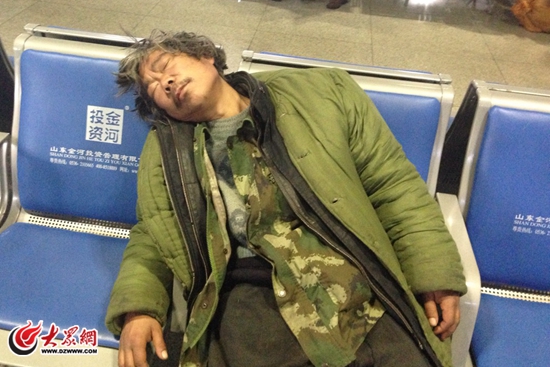 候車室里,一位大叔睡著了。 大眾網(wǎng)記者 劉明明 攝