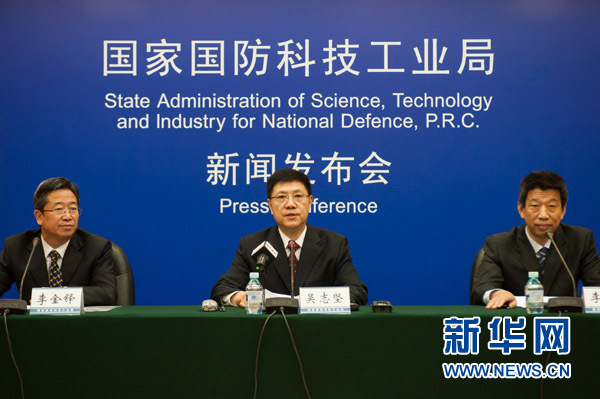 11月26日,國防科工局新聞發(fā)言人吳志堅在發(fā)布會上介紹情況。當日,國防科工局新聞發(fā)言人吳志堅宣布,如果氣象等條件允許,由著陸器和巡視器共同組成的我國嫦娥三號月球探測器將在12月上旬擇機發(fā)射。據(jù)專家介紹,如果發(fā)射、飛行順利,嫦娥三號預計在12月中旬著陸月球。這將是我國航天器首次地外天體軟著陸。新華社記者 劉金海 攝