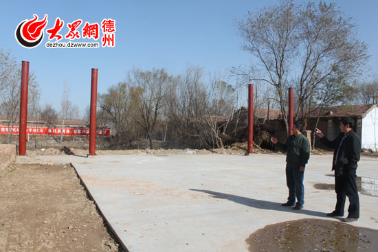 第一書記駐地小院里,幾名村民正在乒乒乓乓敲打著一個鐵架子,一名戴著眼鏡、個頭不高、略顯斯文的中年男子,站在旁邊不斷地和村民們溝通著,這名男子便是丁加軍,鐵架子正是建設(shè)中的孔子文化廣場的名字標(biāo)牌架。