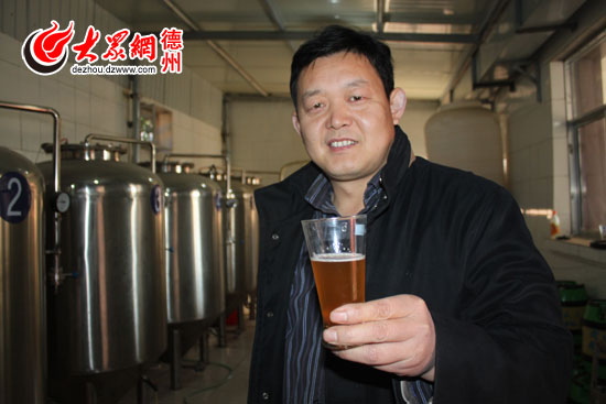 武城縣武城鎮(zhèn)肖邢王莊村“第一書記”宋學遠向記者展示“德國”鮮啤 記者 石少軍 攝