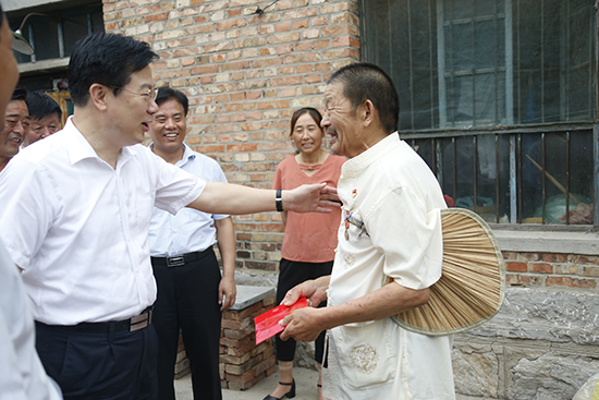 圖:省國資委主任、黨委書記張斌一行在六北村看望老黨員