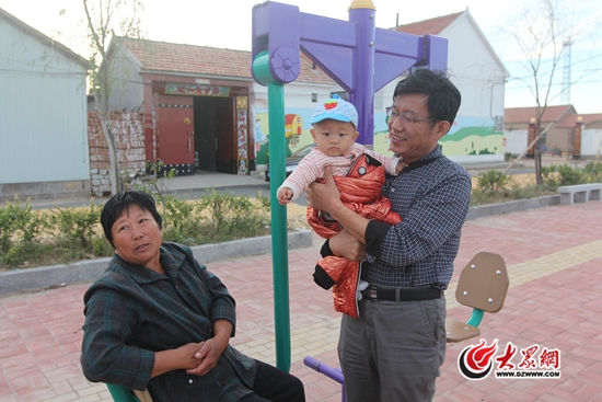 東李村村民丁金榮坐在標(biāo)準(zhǔn)化健身路徑上看孫子