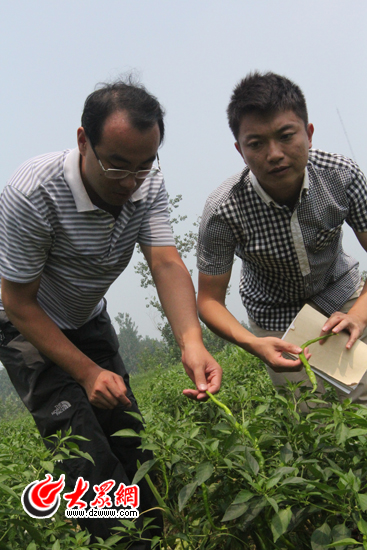 7月31日下午,大眾網(wǎng)董事長、總經(jīng)理林忠禮帶領記者來到了大堤下的這片土地,原本的一片麥地現(xiàn)在卻種上了長線辣椒。賈洪斐說,今年4月,他邀請農(nóng)科院的專家到范坡村實地調(diào)研,根據(jù)土壤條件決定引入長線辣椒。