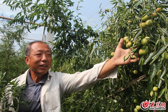 朱榮章告訴記者,自從用上大棚,打藥比往年少了一半,遇上下霜、下雨等壞天氣也不用擔(dān)心棗裂。朱榮章給記者算了一筆賬:大田(露天)冬棗平均每斤5元,大棚冬棗能賣(mài)到15元,畝產(chǎn)按照2000斤計(jì)算,去除成本,每畝地能多收1萬(wàn)多。