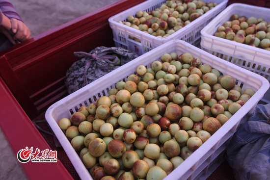 9月24日中午,就在大眾網(wǎng)記者采訪的過(guò)程中,銀座集團(tuán)股份有限公司采購(gòu)本部副部長(zhǎng)劉東紅來(lái)村里查看冬棗長(zhǎng)勢(shì),商定訂購(gòu)細(xì)節(jié),“馬家坊的冬棗很快就能賣(mài)到銀座超市了”。