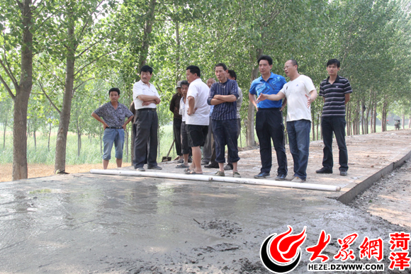 山東師大派駐東明縣菜園集鎮(zhèn)第一書記后衙村戰(zhàn)秉聚(右三)、祥寨村譚效忠(右二)、洪莊村尚延山(右一)到修路工程現(xiàn)場調(diào)度工作