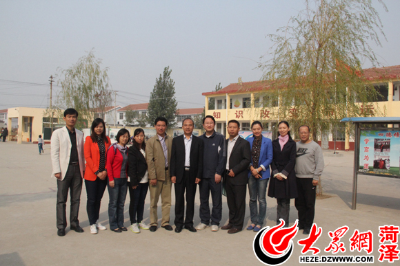 山東師大派駐東明縣菜園集鎮(zhèn)“第一書記”后衙村戰(zhàn)秉聚(左五)、祥寨村譚效忠(右一)、洪莊村尚延山(左一)與山東師大附小到菜園集鎮(zhèn)中心校送觀摩課的老師合影