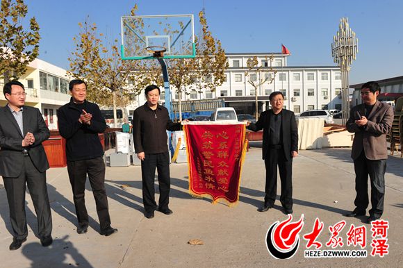 東明縣菜園集鎮(zhèn)黨委書記彭金儉(右二)向山東省公安廳警務(wù)保障部副主任許新華(左三)贈(zèng)送錦旗 省公安廳派駐東明縣菜園集鎮(zhèn)白店村“第一書記”李忠表示,今后將繼續(xù)把黨建工作放在首位,踐行“抓黨建促脫貧”工作思路,將“第一書記”工作落到實(shí)處。