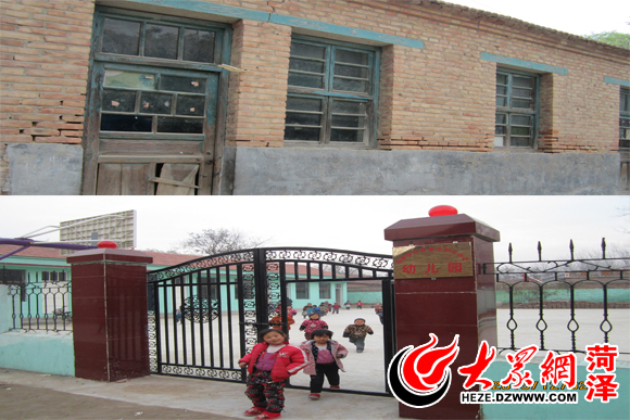 翻建前(上)后(下)的明王莊幼兒園校舍對比