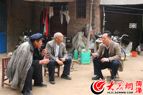 “第一書記”楊德峰(右)與老黨員、老干部交談