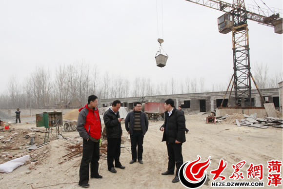 楊德峰、韓國梁在幼兒園施工現(xiàn)場查看進度