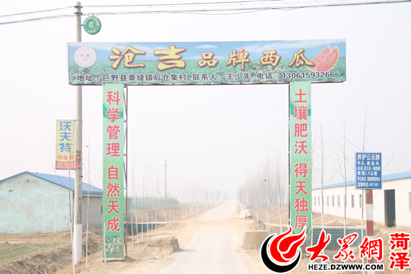 瓜農(nóng)掛起的“滄吉”西瓜招牌