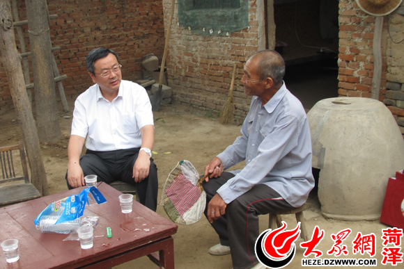 山東省政協(xié)副主席、省工商主席王乃靜(左)到幫包村調(diào)研并看望困難戶(資料圖)