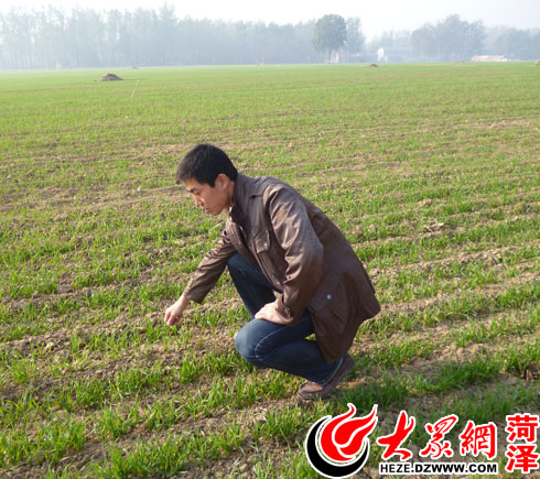 吳明磊現(xiàn)場(chǎng)查看麥苗長(zhǎng)勢(shì)情況