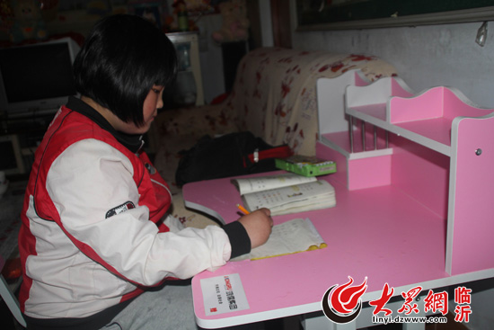 讀二年級(jí)的張馨迫不及待的用上自己的新桌椅
