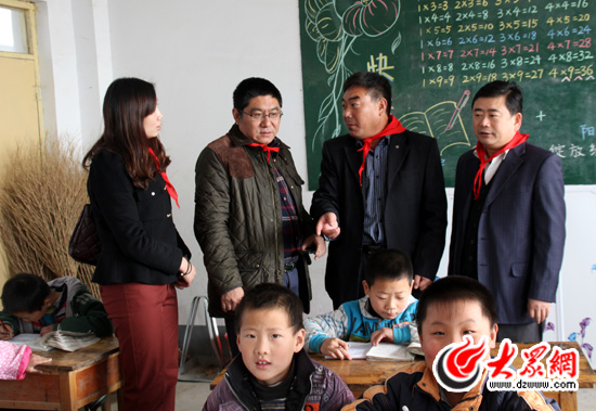大眾網(wǎng)總編輯朱德泉、得象董事長繆峰等領(lǐng)導(dǎo)參觀石埠村小學(xué)教室