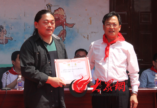 中國美協(xié)會員、青年畫家王濤接受學(xué)校聘書,承諾以后定期到學(xué)校為孩子們上美術(shù)課。