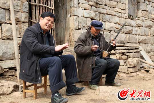 院子里,一個老人正在拉著二胡,神情十分專注。旁邊還有一位老太太,不時提醒我們上山慢一點兒。通過介紹,記者得知拉二胡的老者姓陳,是以前后峪村的書記。退休后因為舍不得這片山,便在這里蓋了幾間房子,跟老伴長居于此,閑暇之時放羊種樹,已經(jīng)有二十多年的時間了。據(jù)他回憶,山上的樹經(jīng)他手植的已有數(shù)千畝。季將握著他的手說:“您是老書記,我是新書記,以后村里有什么事情我還要多向您請教!