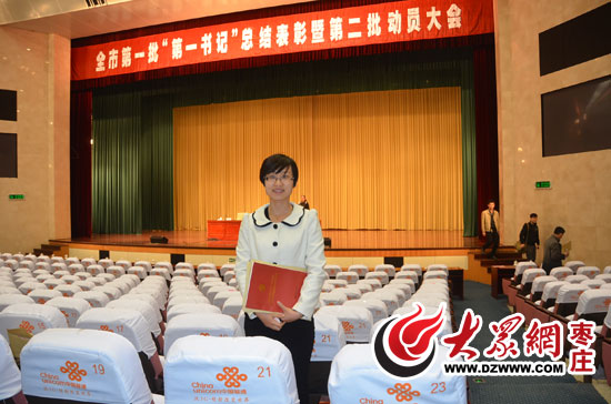 閔瑩在棗莊市第一批“第一書記”總結(jié)表彰暨第二批動(dòng)員大會(huì)現(xiàn)場(chǎng)。