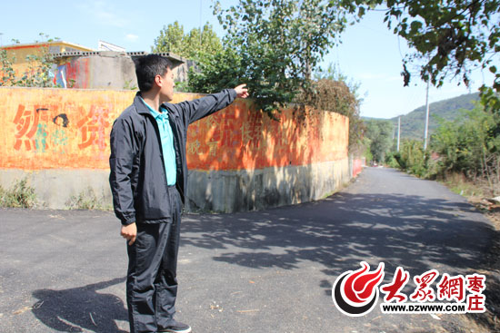“第一書記”亓振軍手指村內(nèi)柏油路介紹柏情況。