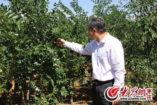 金鑫在棗園查看棗樹的生長情況。