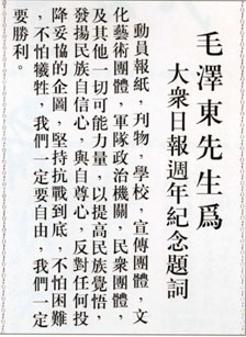 毛澤東同志為大眾日報創(chuàng)刊一周年題
