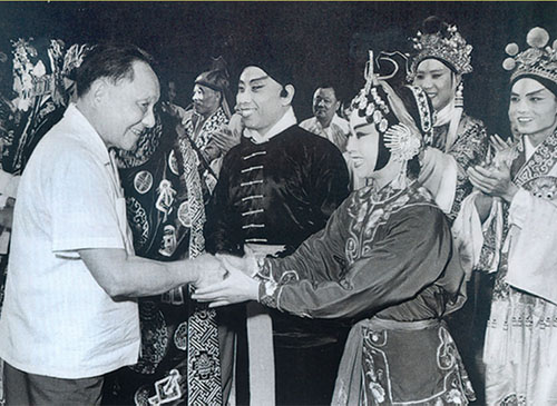 鄧小平同志1979年8月在山東考察期間,接見山東省京劇團(tuán)演員(鄭華 攝)