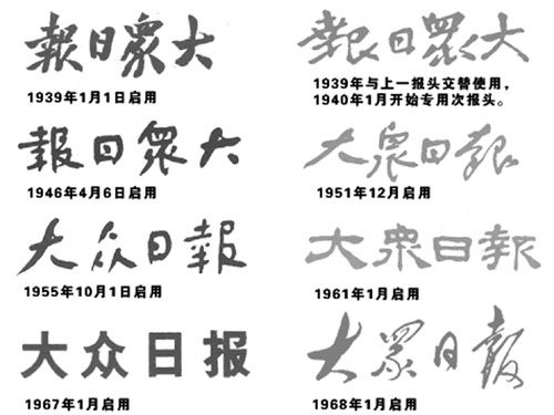 大眾日?qǐng)?bào)不同時(shí)期的報(bào)頭