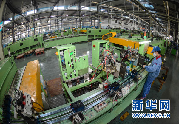 工人在天能循環(huán)經(jīng)濟(jì)產(chǎn)業(yè)園內(nèi)的全自動(dòng)蓄電池裝配生產(chǎn)線(xiàn)上作業(yè)。新華社記者 徐昱 攝