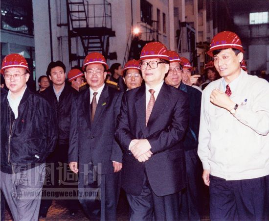 圖:2002年5月22日,時任重慶市委書記的賀國強(qiáng)陪同江澤民同志視察西南鋁廠。
