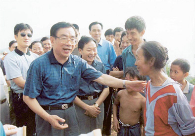 2000年8月5日,賀國強歡送即將外遷的三峽庫區(qū)移民。