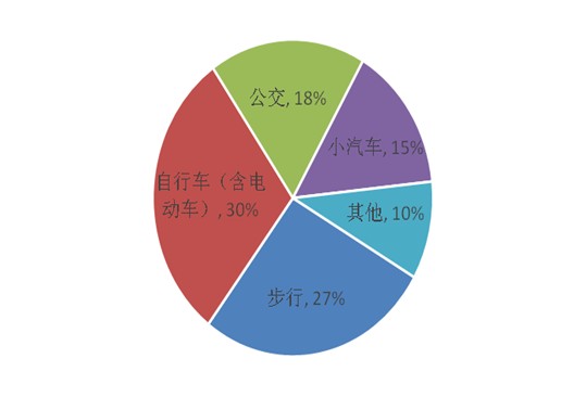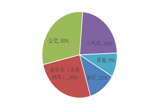 正常工作日內,居民主要的交通出行方式結構圖。