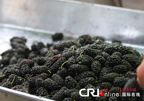 近日,國際在線生態(tài)中國頻道記者隨“椹果之鄉(xiāng) 生態(tài)夏津”生態(tài)報道行,來到了山東省夏津縣。白色的桑椹果比之紫色桑葚甜度不遑多讓。