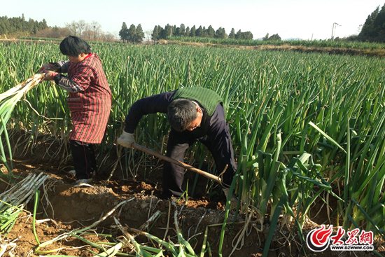 蔥農(nóng)們在忙碌地刨蔥。 大眾網(wǎng)記者 劉明明 攝