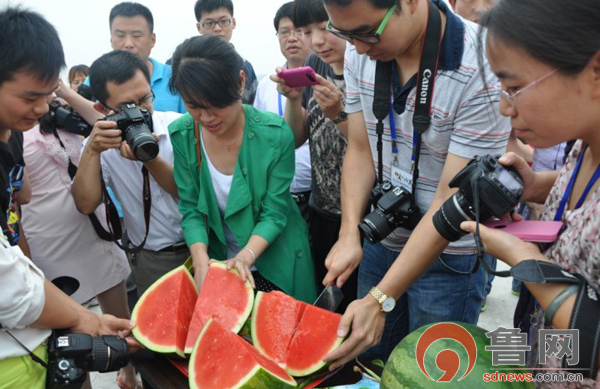 魯網(wǎng)6月18日訊(記者 劉梅婷)今天下午,“聚焦美麗山東——第九屆中國(guó)網(wǎng)絡(luò)媒體山東行”采訪團(tuán)抵達(dá)聊城市匯隆無(wú)公害瓜菜合作社,領(lǐng)略這里現(xiàn)代農(nóng)業(yè)的風(fēng)采。眼下正是西瓜上市的時(shí)節(jié),在聊城經(jīng)濟(jì)開(kāi)發(fā)區(qū)許營(yíng)鎮(zhèn)姚莊村,隨處可見(jiàn)的“許營(yíng)西瓜”成了搶手貨。田間地頭林立的西瓜收購(gòu)點(diǎn)和排成長(zhǎng)龍的運(yùn)瓜車(chē),讓村民心里樂(lè)開(kāi)了花。