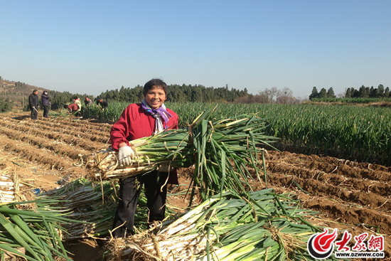 蔥農(nóng)們?cè)诿β档嘏偈[。 大眾網(wǎng)記者 劉明明 攝
