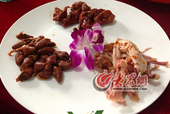雞胗、雞心都被制成了具有扒雞風(fēng)味的美食。大眾網(wǎng)記者 劉明明 攝