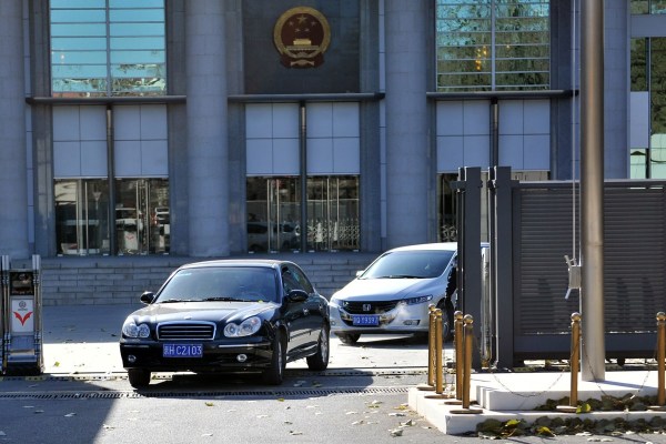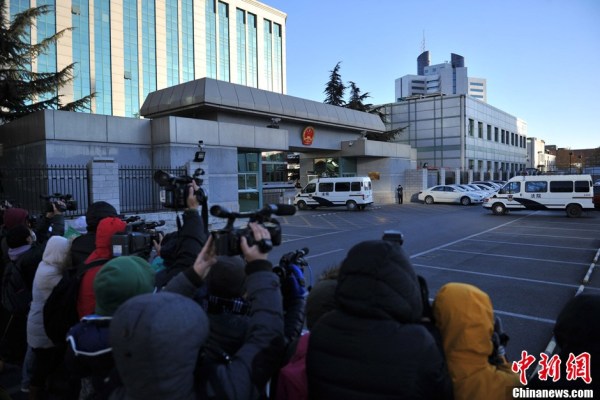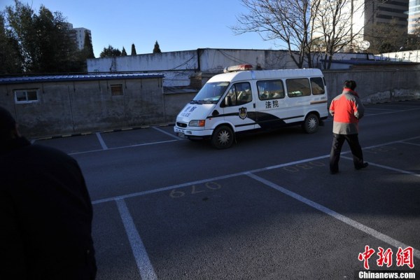 11月27日上午,押解李某某等嫌疑犯的車(chē)輛駛?cè)氡本┦械谝恢屑?jí)人民法院。