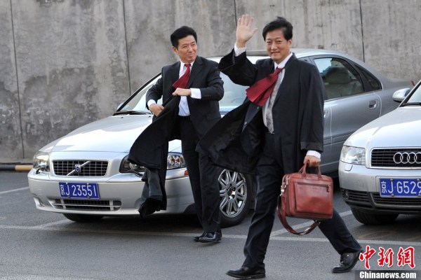圖為李某某律師張起淮先抵法院。