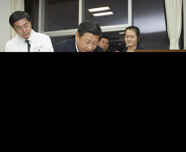 兩天來,習(xí)近平一直關(guān)注著事故搶險(xiǎn)工作,惦記著在事故中受到損失的群眾。24日下午,習(xí)近平一抵達(dá)青島,就在山東省委書記姜異康、省長郭樹清陪同下,來到青島大學(xué)附屬醫(yī)院黃島分院,看望慰問傷員、醫(yī)護(hù)人員和遇難者家屬。他走進(jìn)病房,先后來到受傷群眾姜瑞芬、薛淑美、徐之泰、孫桂山病床前,同他們親切握手,仔細(xì)查看傷情,鼓勵他們配合治療、安心養(yǎng)病。習(xí)近平同醫(yī)療專家代表一一握手,肯定他們關(guān)鍵時(shí)刻迅速行動、連續(xù)作戰(zhàn)、不怕疲勞的救死扶傷精神,希望他們勞逸結(jié)合、科學(xué)調(diào)度、再接再厲,確保每個(gè)傷員都得到精心治療。習(xí)近平在看望遇難者家屬時(shí),對他們親屬的不幸遇難表示哀悼,希望他們節(jié)哀制痛、樹立生活信心,表示黨和政府一定會盡最大努力安排好大家工作生活。他要求有關(guān)部門要一家一家把善后工作做細(xì)做實(shí)。