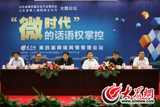 本屆論壇是在山東省第四屆文化產(chǎn)業(yè)博覽會組委會、山東網(wǎng)絡文化辦公室的指導下,由大眾報業(yè)集團大眾網(wǎng)主辦,海爾集團、中國工商銀行山東省分行、山東中煙工業(yè)責任有限公司支持,以“微時代”的話語權掌控為主題,通過“微媒體”發(fā)展情況與傳播規(guī)律、以微博為媒介的“微時代”網(wǎng)絡傳播模式、“微時代”負面信息的預防與危機處理、微博與論壇互動傳播的輿情應對四個議題的討論,解決在“微時代”下,如何應對危機事件頻發(fā)引發(fā)的網(wǎng)絡“微傳播”效應,以最快、最佳的方式解決,向公眾傳遞事實信息,進行網(wǎng)絡輿論危機管理,塑造政府和企業(yè)良好社會和品牌形象等問題。