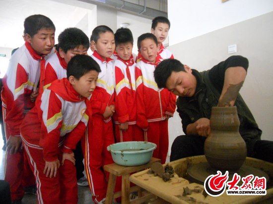 在記者看到,在教學(xué)樓一樓大廳內(nèi),志愿者展示的黑陶制作技藝吸引了不少學(xué)校圍觀。在二樓音樂教師內(nèi),來自日照市婦女兒童活動中心的舞蹈老師正在教學(xué)生們跳騎馬舞!拔姨貏e喜歡跳舞,但是沒有人教我,現(xiàn)在終于有專業(yè)老師來教我們了!币晃粚W(xué)生笑著說。